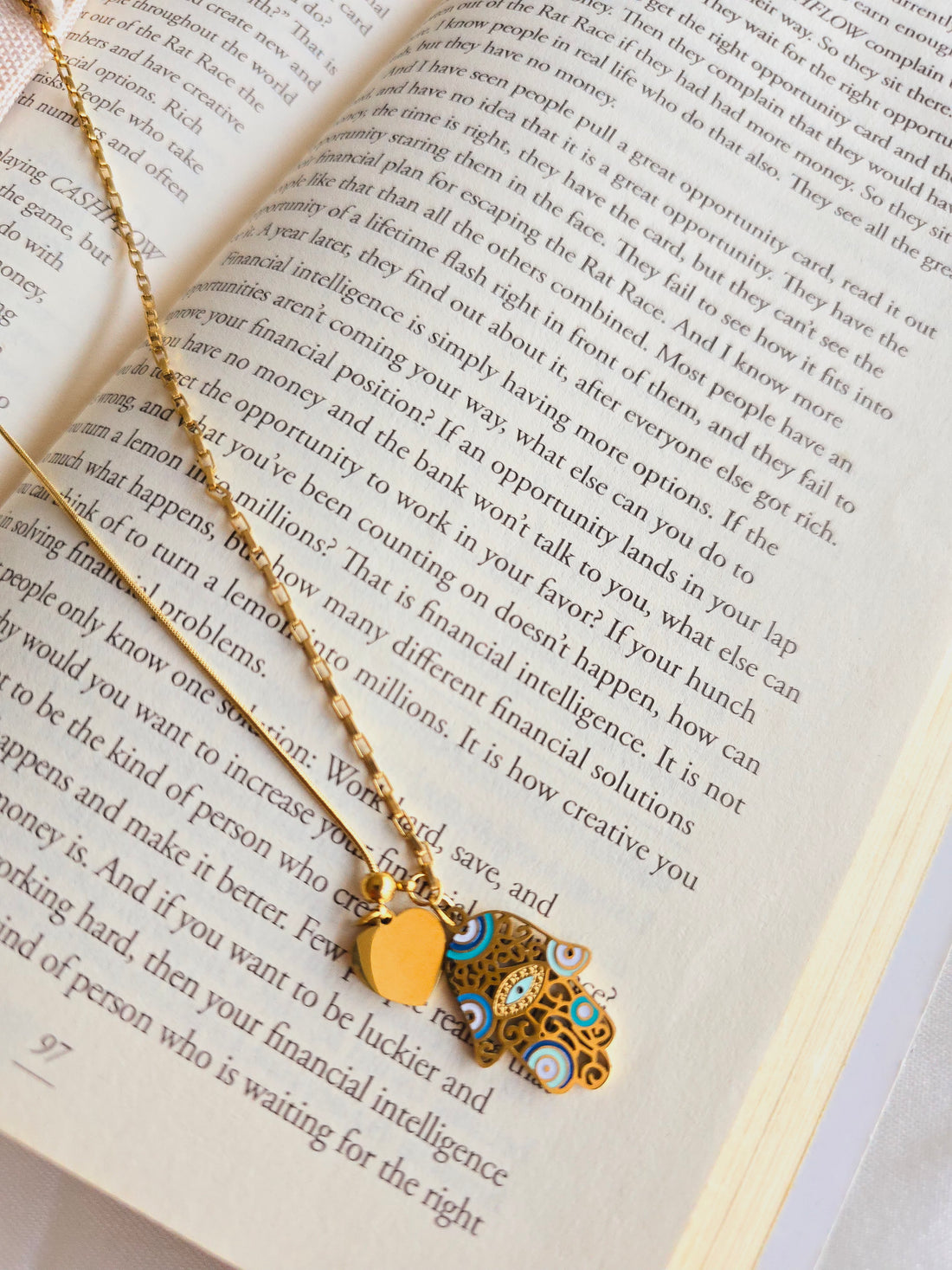 Elysa Charm Pendant β Hamsa & Heart Duo